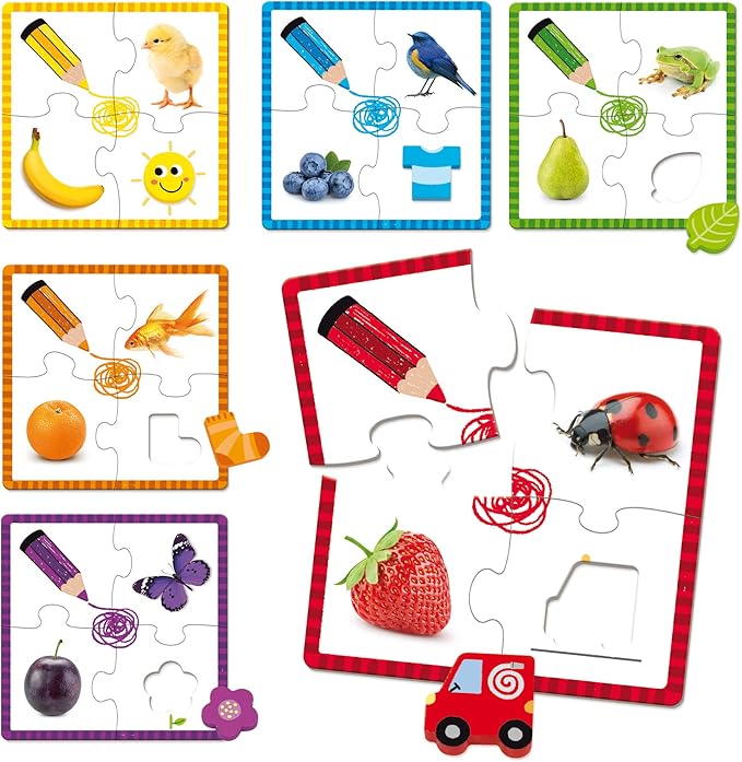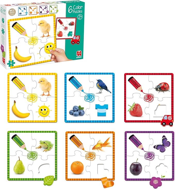 • 6 puzles de 4 piezas cada uno para aprender los colores
