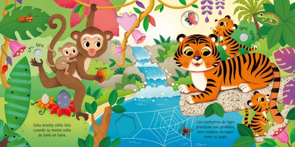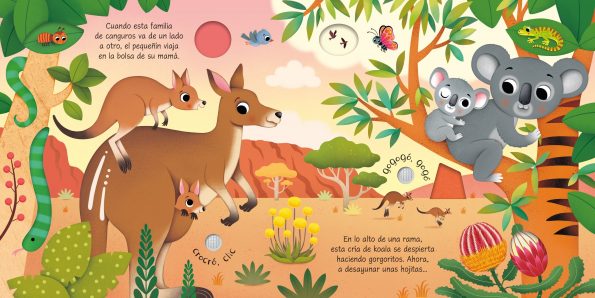 Un libro encantador para escuchar los sonidos de las crías de animales como pingüinos, focas, tigres, rinocerontes, canguros, koalas, y hasta una pequeña alpaca y un burrito que también tienen algo que decir. Al pulsar los diez botones distribuidos por las páginas, los niños podrán escuchar gruñidos de animalitos de todos los rincones del planeta.