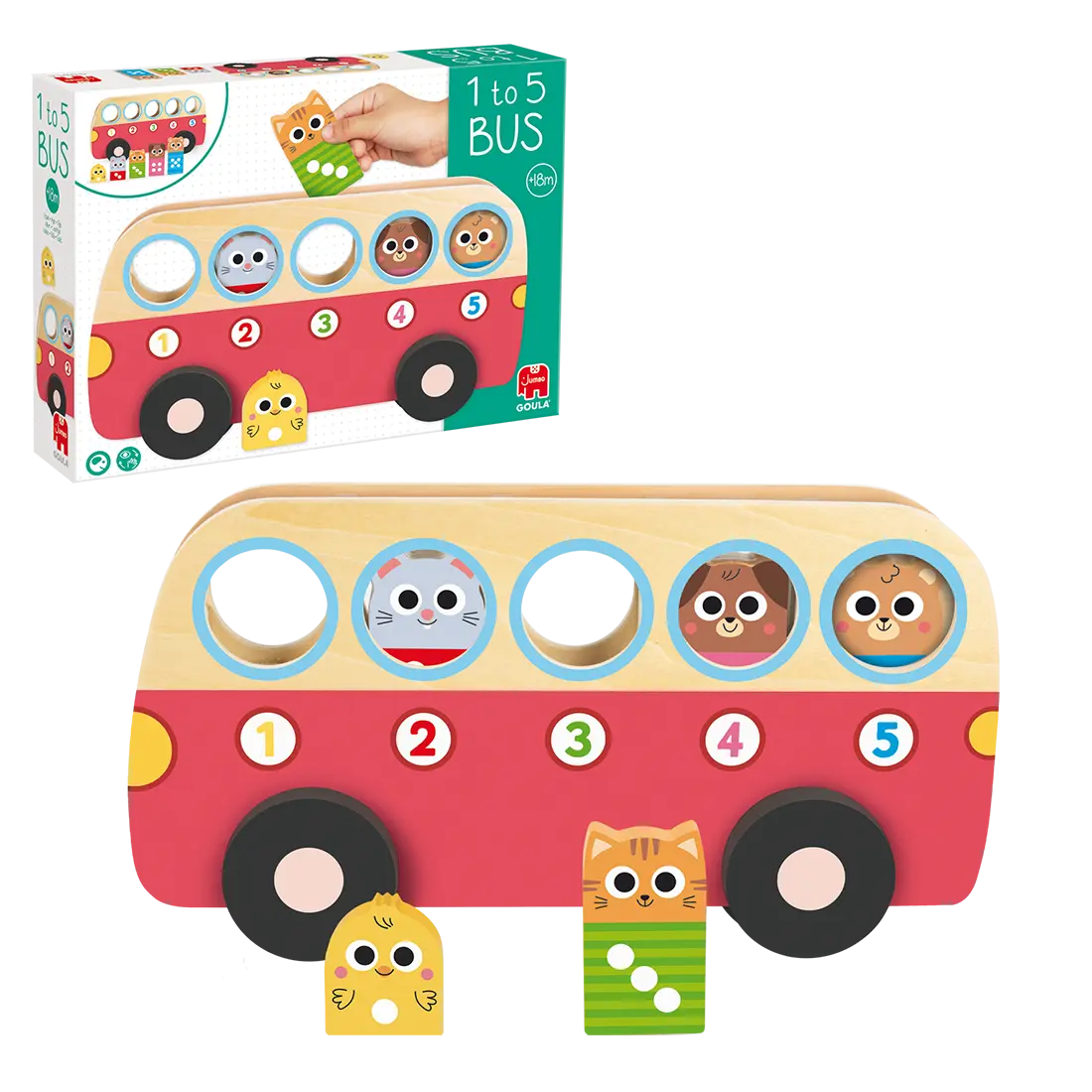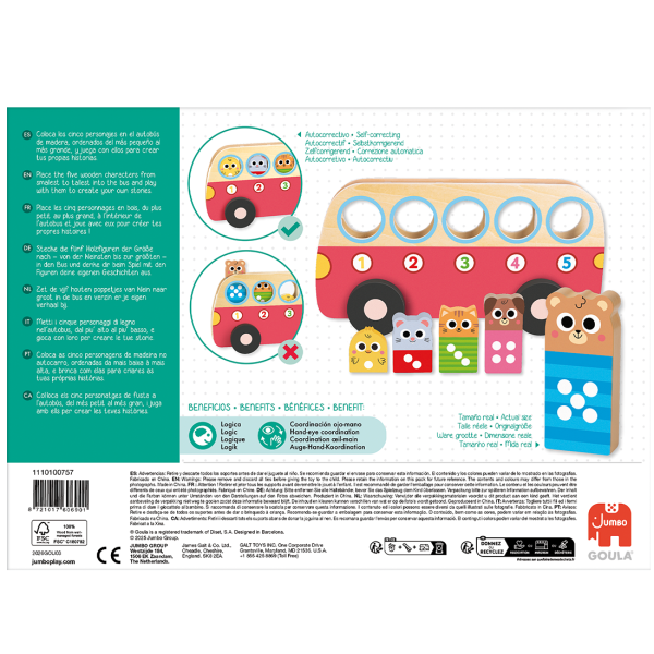 Incluye cinco espacios numerados donde colocar correctamente los pasajeros, ayudando a relacionar número y cantidad de manera intuitiva. Gracias a sus piezas grandes y resistentes, es perfecto para manos pequeñas.