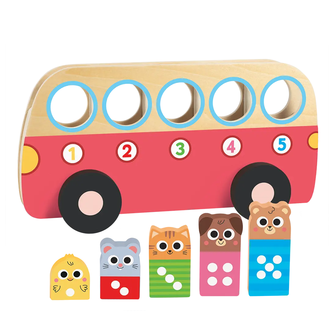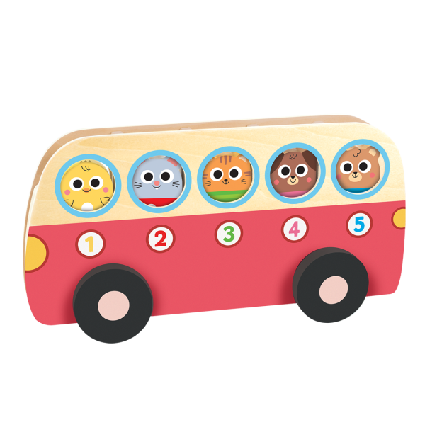 El autobús números 1 a 5 de madera es una propuesta manipulativa ideal para iniciarse en el conteo de forma visual y práctica.
