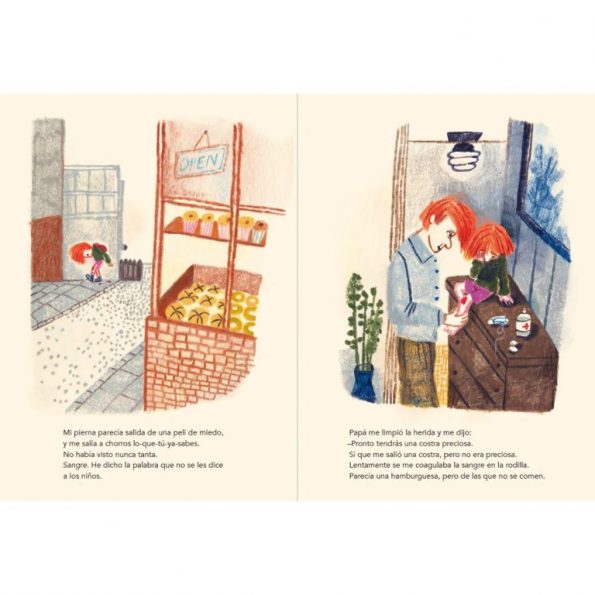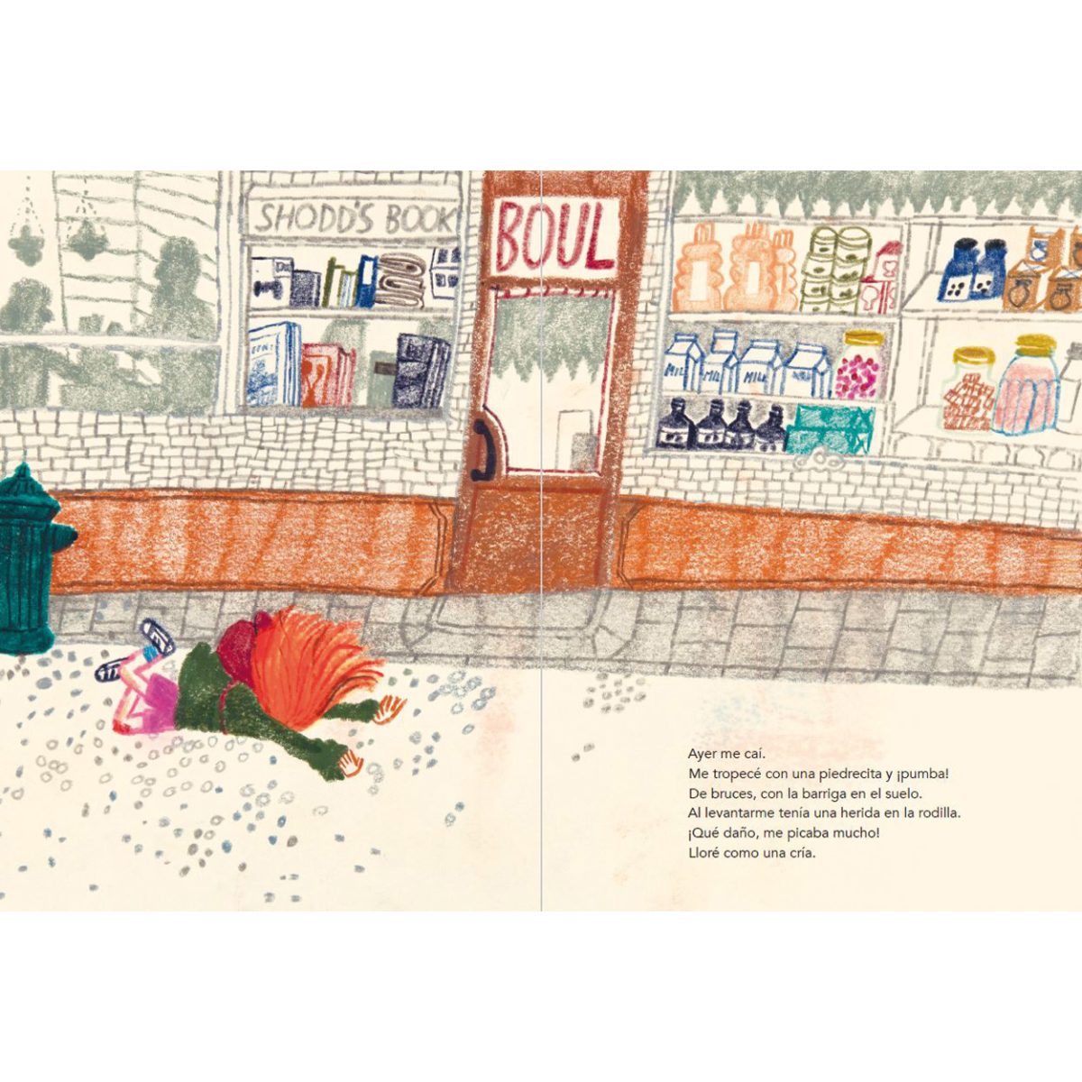 «Ayer me caí. Me tropecé con una piedrecita y ¡pumba! De bruces, con la barriga en el suelo. Al levantarme tenía una herida en la rodilla. ¡Qué daño, me picaba mucho! Lloré como una cría.» Un nuevo álbum ilustrado de Beatrice Alemagna; una conmovedora e imaginativa exploración del crecimiento, el cambio y el aprendizaje de cómo vivir con las cosas que nos asustan.