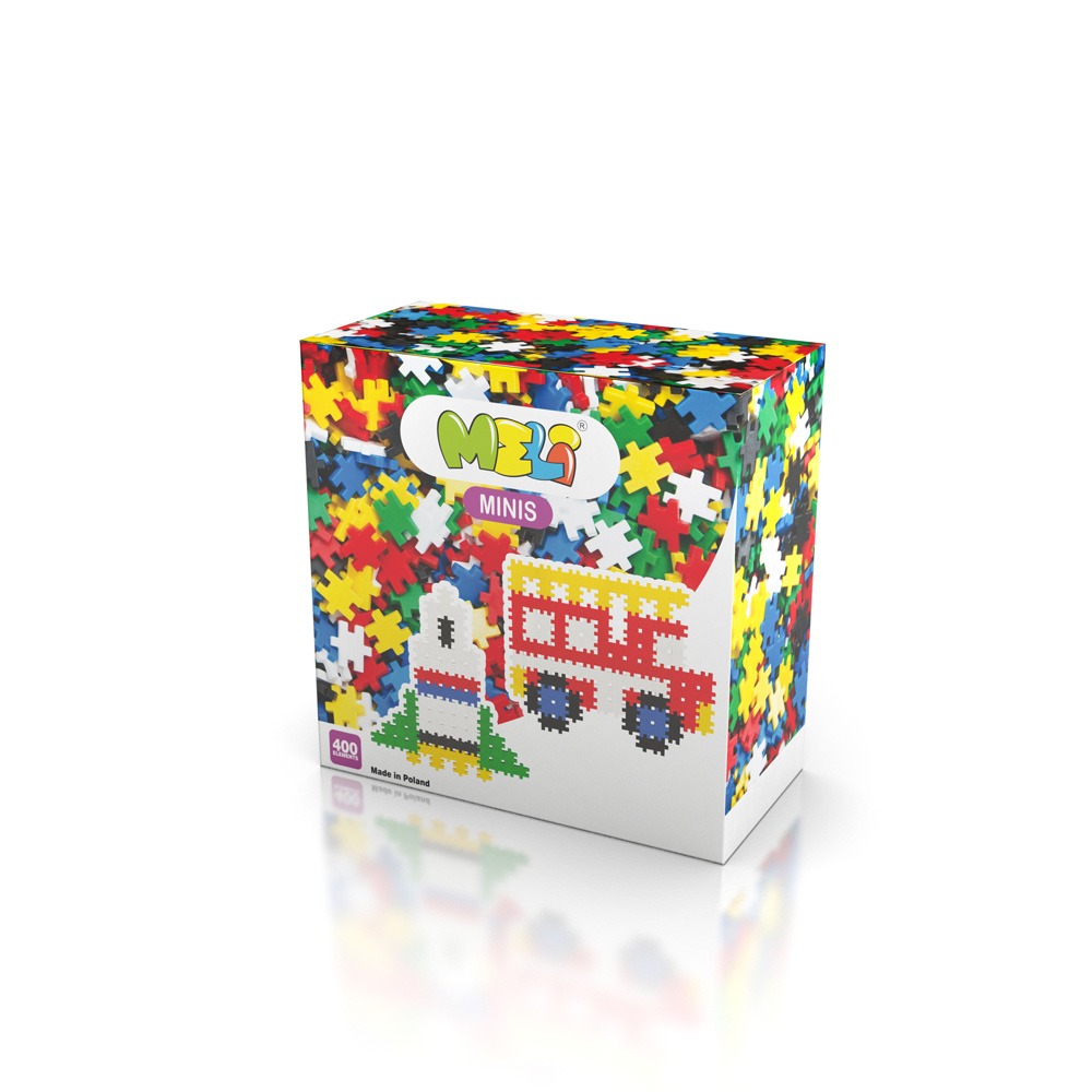 El juego MELI MINIS 400 contiene pequeños bloques que son fáciles de conectar como piezas de un rompecabezas, lo que permite a los niños crear modelos planos o 3D. Un cohete, un pingüino, un camión de bomberos: estos son sólo algunos ejemplos del uso creativo de la serie MINIS en atractivos colores. Los modelos se pueden crear de forma espontánea o con la ayuda de las sugerencias adjuntas. No espere: proporcione a su hijo un juguete inteligente y creativo.