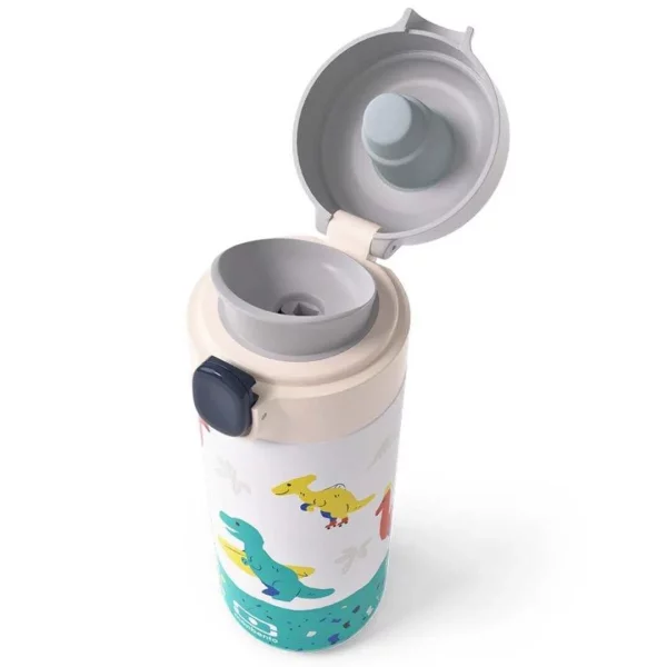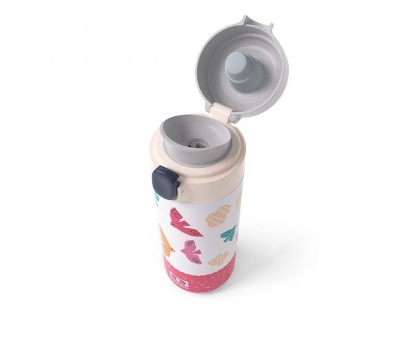 Diseñada en acero inoxidable, esta botella térmica mantendrá las bebidas de los más pequeños bien frescas hasta 12 horas*. Gracias a su tapón sport provisto de boquilla y botón de seguridad, su uso es de lo más sencillo, ¡sin fugas al fondo de la mochila!