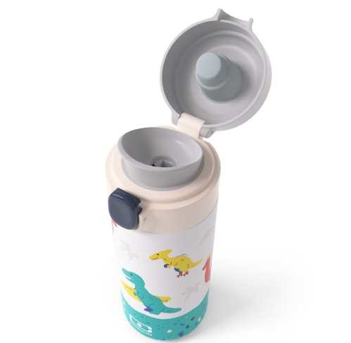 La botella térmica infantil Monbento Pop modelo DINOS es la opción ideal para que los niños lleven su bebida al colegio, excursiones o actividades al aire libre.