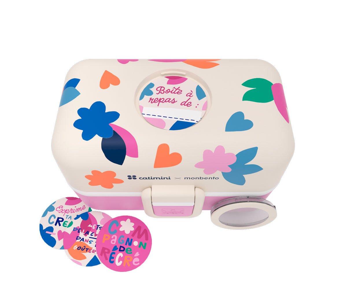 Con sus lengüetas de cierre pensadas para las manos más pequeñas, esta fiambrera de formas divertidas puede personalizarse gracias a sus pegatinas intercambiables.