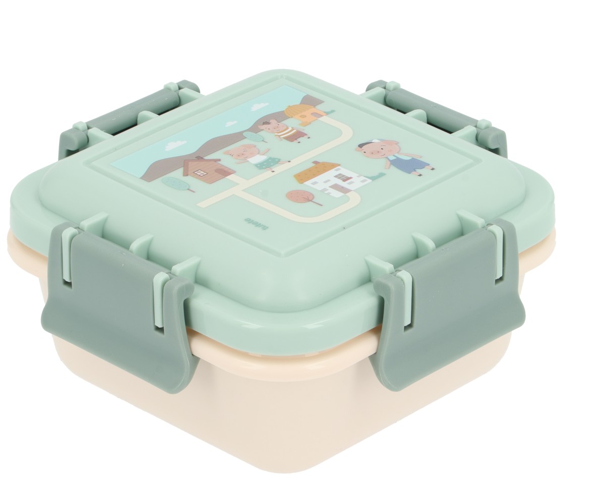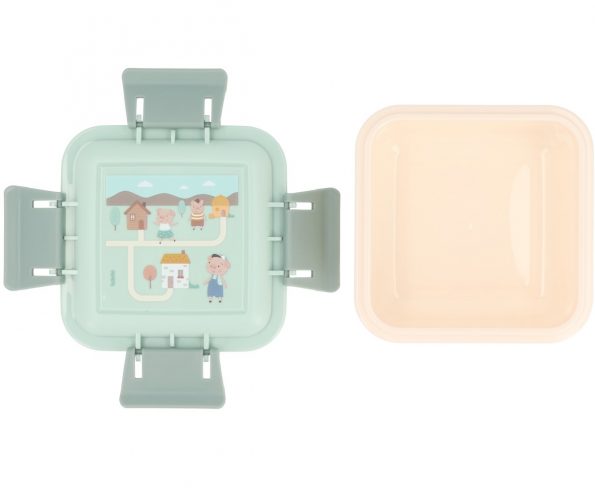 Esta cajita de almuerzo es perfecta para llevar snacks al parque o el almuerzo al colegio. Está decorada con una bonita ilustración en la tapadera y se cierra con facilidad para que los más pequeños puedan abrirla sin dificultad.