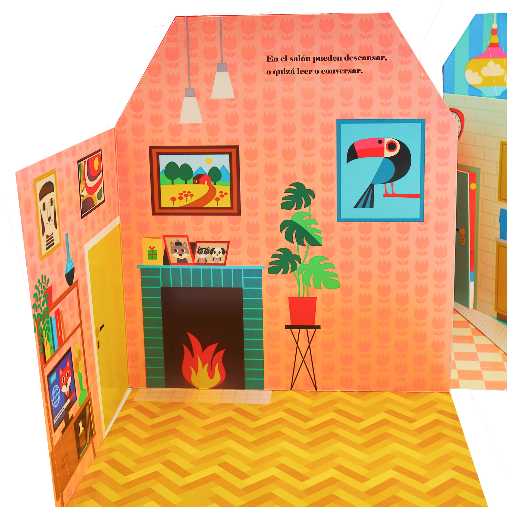 Esta espectacular casa de muñecas desplegable tiene cuatro habitaciones diferentes, muebles en tres dimensiones, personajes y pegatinas para decorar cada estancia. Presenta un formato perfecto para los que tienen poco espacio o para llevar de viaje, ya que las piezas se pueden guardar dentro del resistente cajón que hay en el lateral del libro.