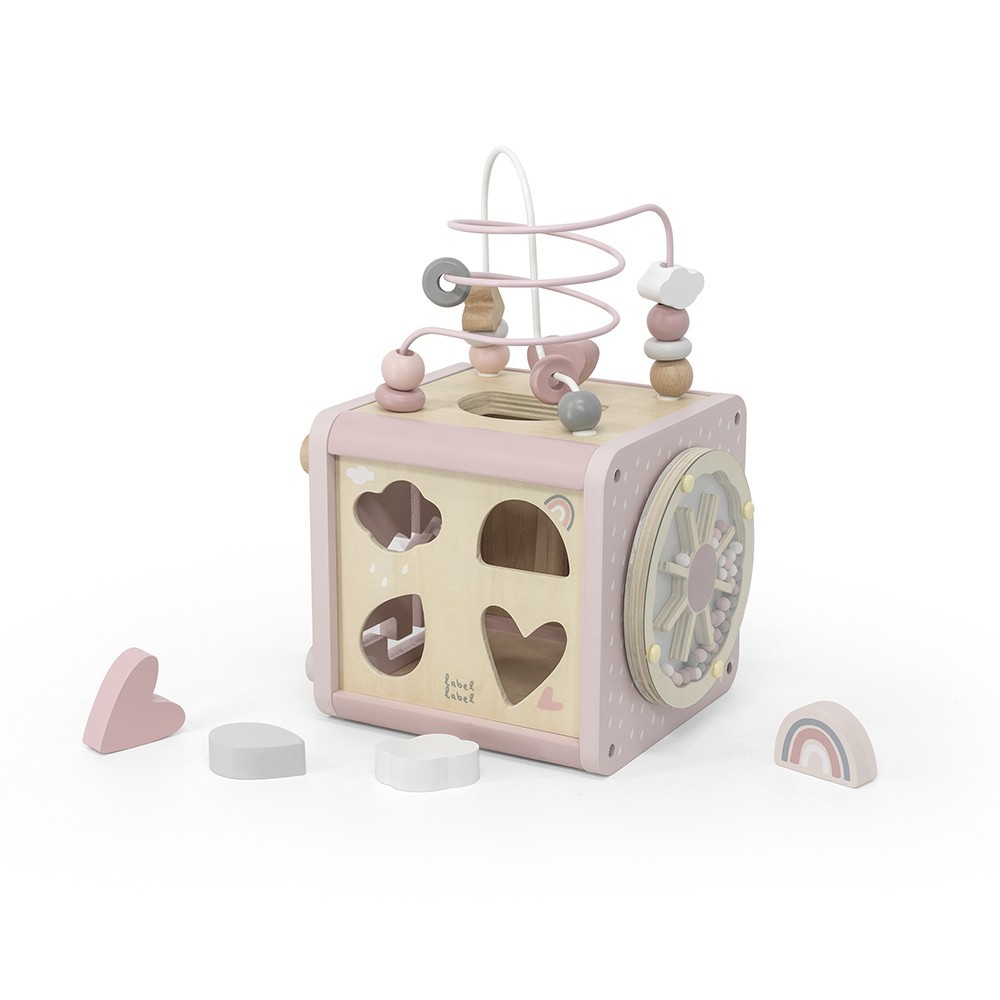 El cubo de actividades 5 en 1 viene con un clasificador de formas, engranajes, un laberinto de pistas, un xilófono y un laberinto de cuentas para mantener a los niños ocupados. El laberinto de cuentas se separa del cubo para convertirse en dos juguetes independientes. El juguete multifuncional ofrece un fascinante movimiento continuo para mucha diversión dinámica, estimula la creatividad y el pensamiento lógico, la motricidad fina y el cultivo de las habilidades cognitivas de las formas, los colores y las habilidades de contar y asociar.
