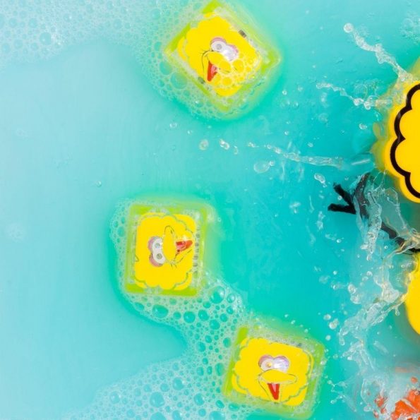 Los 4 cubos de luz amarillos Sesame Street de Glopals brillarán dentro del agua siendo tan sencillo apagarlos como sacándolos del agua.