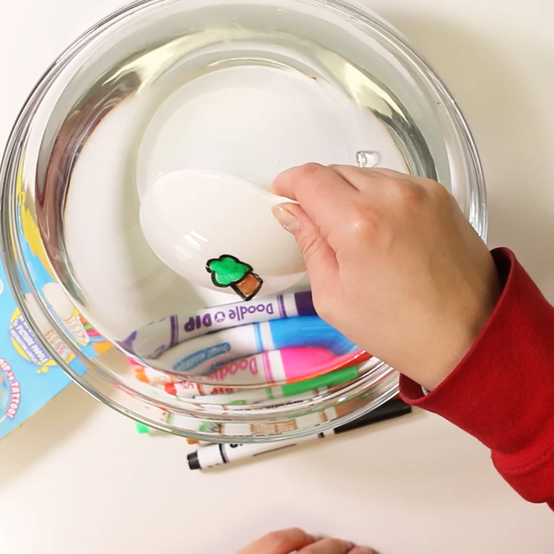 Disfruta de una creatividad sin límites y deja volar tu imaginación dibujando y flotando tus propias imágenes para darles vida. Una vez sumergidas en el agua puedes ponerlas en tus manos o brazos como un tatuaje temporal. Seguro para la piel – Seguro para el desagüe – Fácil de limpiar – Sin manchas