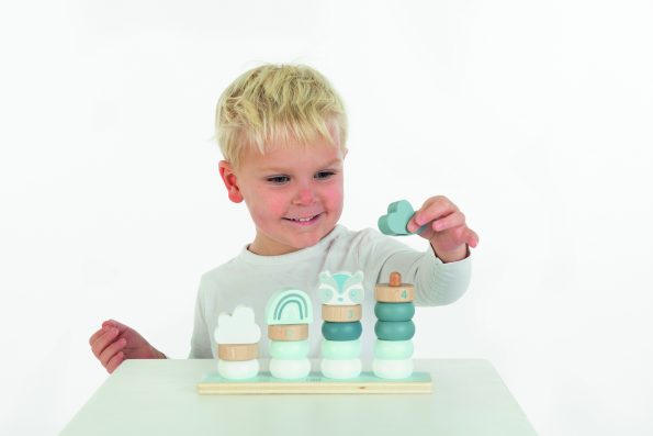 Descubre a este nuevo amigo súper mono con un divertido juego de apilar, diseñado especialmente para manos pequeñas y curiosas. 10 anillas apilables de colores, 4 anillas apilables numeradas y 4 bloques superiores Label Label ayudan a tu hijo a apilar, clasificar, contar… y mucho más. Los niños pueden inventar sus propios juegos y apilar los anillos en orden de color, uno al lado del otro, mezclar los colores, sobre el soporte o fuera de él, con figuras o sin ellas… Inventa una historia con los monísimos bloques superiores y el simpático amigo… O inventa sus propias figuras.