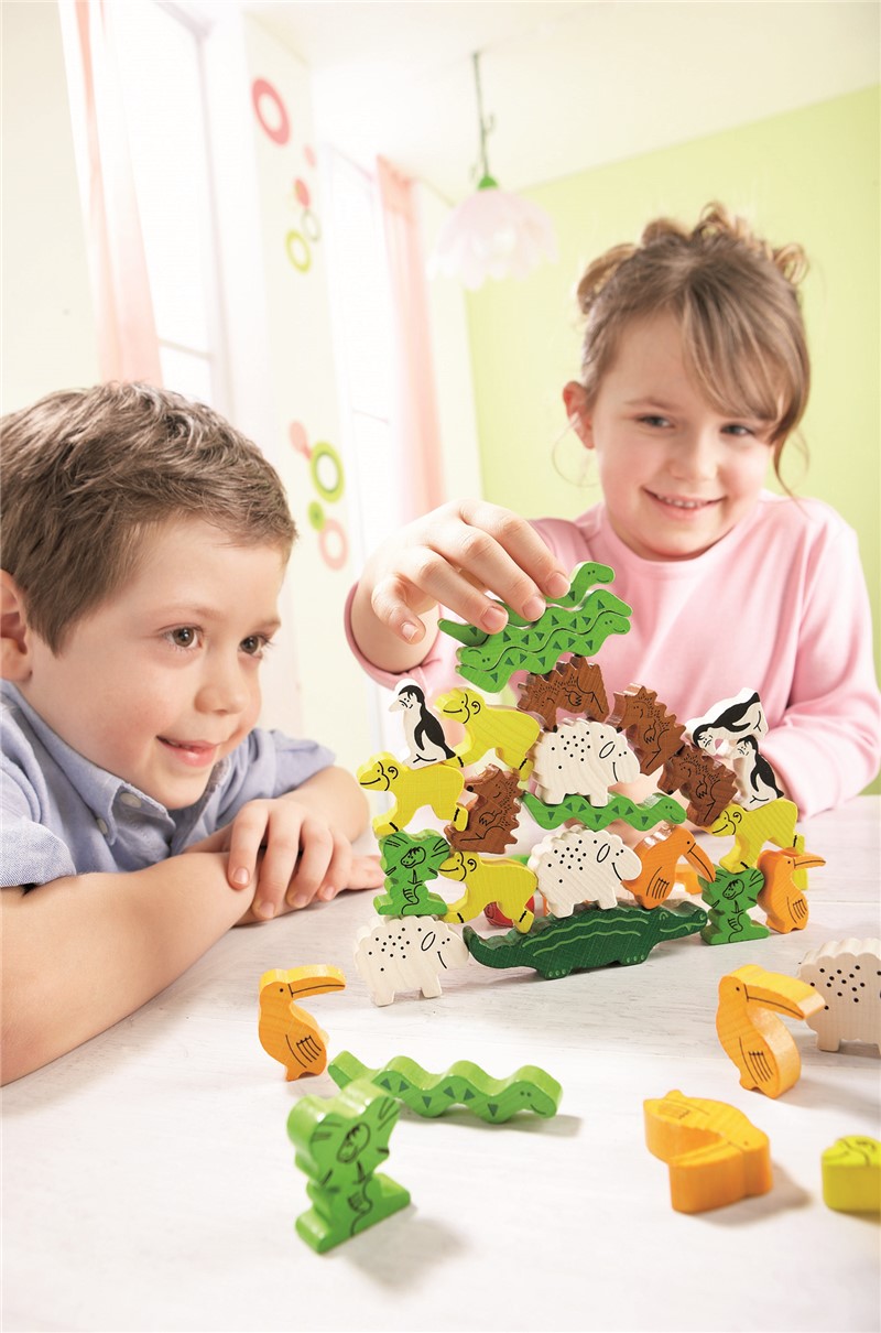 👉 Gana quien consiga colocar todos sus animales sin que la torre se derrumbe.