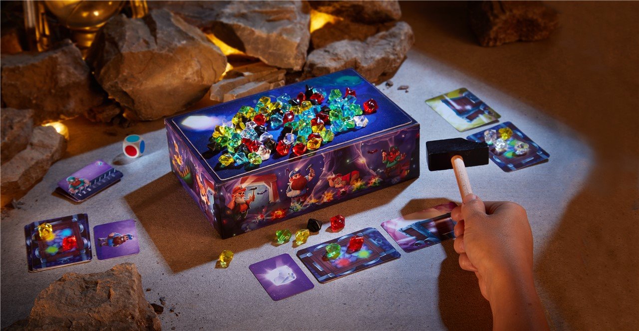 Con su original mecánica, los niños deberán golpear con un martillo para conseguir piedras preciosas… pero ¡ojo! Si se pasan de fuerza, perderán todo el botín.