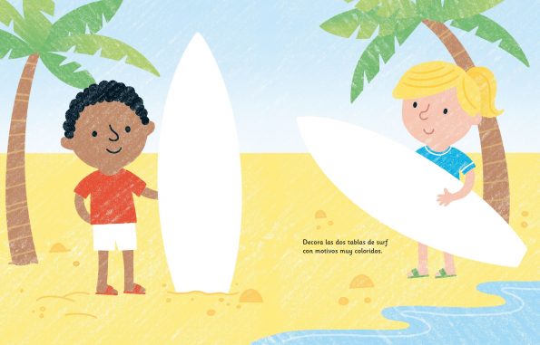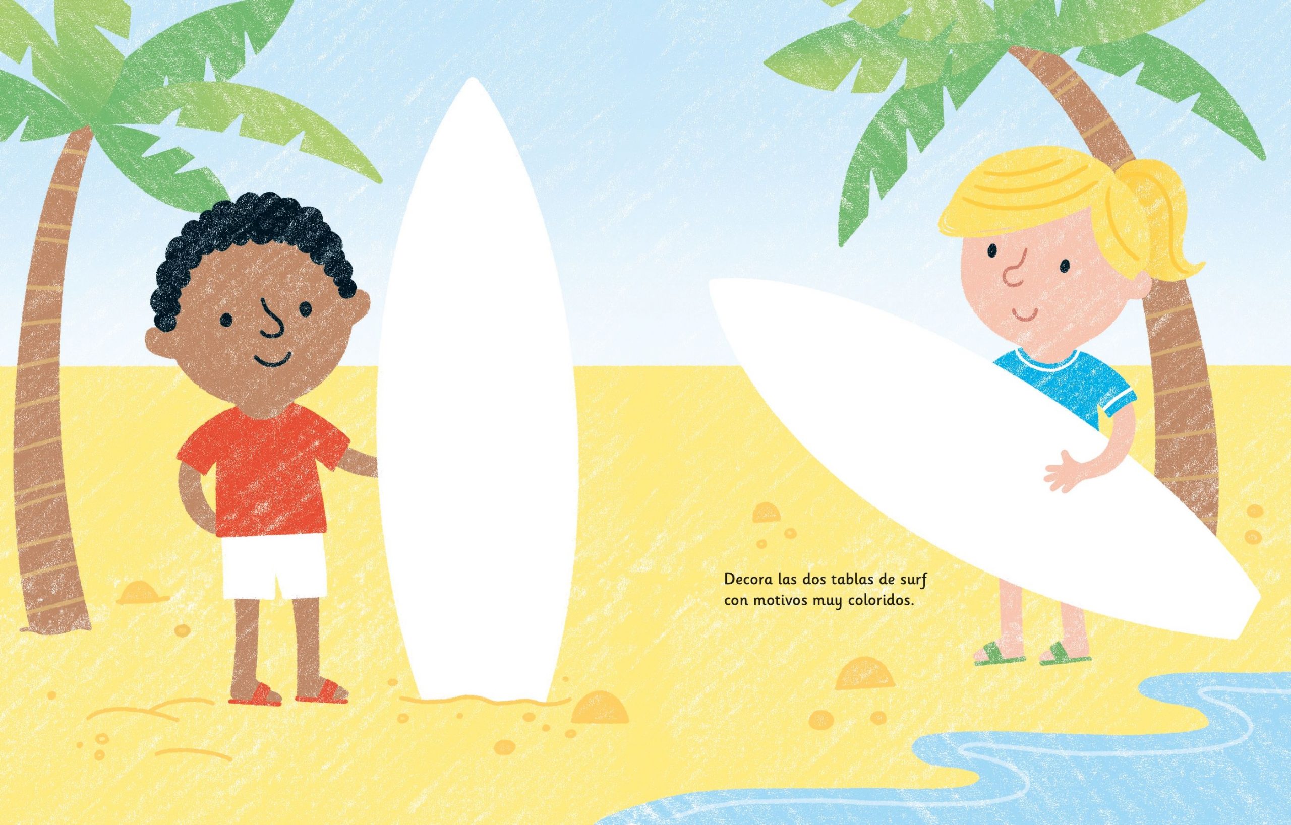 Libro de actividades para pintar con los dedos, especialmente pensado para mantener a los pequeños ocupados durante las vacaciones de verano. Incluye un panel de almohadillas con tinta de siete colores, con lo que solo tendrán que mojar las yemas de los deditos para crear un montón de objetos inspirados en el verano: helados, cangrejos, peces nadando en una piscina, una tabla de surf que tendrán que decorar o un pícnic en el que tendrán que crear la comida.