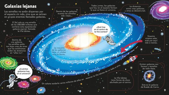 Una iniciación fabulosa al tema del espacio que presenta a los niños un sinfín de cosas que admirar y comentar, como el interior de una estación espacial o un recorrido por el sistema solar.