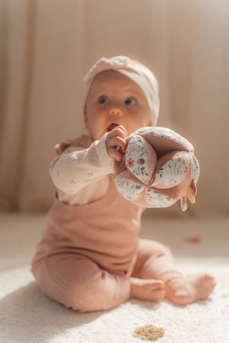 ¡Tírala y ve por ella! Esta pelota montessori con su forma interesante es un gran desafío para su pequeño. Hay muchos lugares para agarrar y explorar con diferentes texturas y patrones. Es fácil de levantar para las manos pequeñas y cuando se mueve, el alegre sonido de la campana animará a su bebé. Diseñada para la nueva colección de hadas, los nudos fáciles de agarrar y las diversas etiquetas estimularán los sentidos, desarrollarán el agarre y mantendrán a su bebé ocupado en el parque.