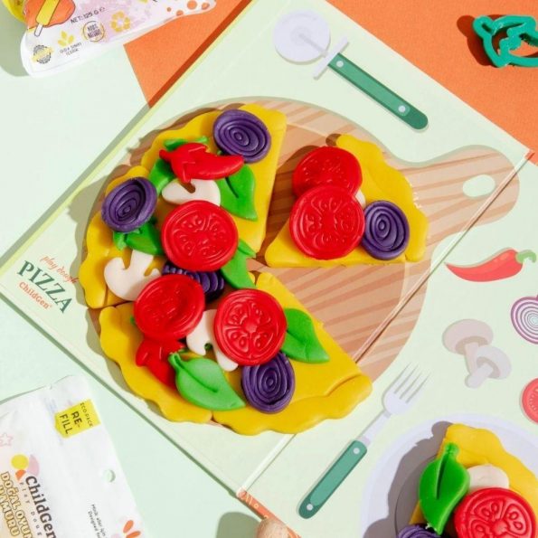 Apostamos por envases reutilizables, para un futuro más sostenible. Su bonita caja exterior aporta ideas para crear las mejores pizzas, así como una vez acabado el juego guardar fácilmente todas las piezas. La tapa se despliega ofreciendo un tapete sobre el cual amasar y estirar la masa con el rodillo o crear tus ingredientes favoritos con los 6 moldes con forma de champiñón, tomate, cebolla… Para que puedas utilizar el mayor tiempo la plastilina Childgen, recomendamos guardarla en su bolsa con cierre zip. Sus materiales son de la mayor calidad y permite ser utilizada durante mucho tiempo ya que no se seca ni endurece fácilmente.