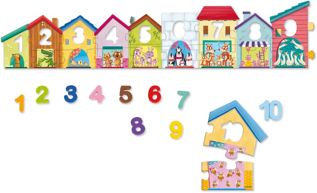Aprende a contar del 1 al 10 con este puzzle de madera de la marca GOULA, asociando las piezas en función de su forma, las cantidades de animales que aparecen, los colores y el números. Los niños se divertirán desarrollando su destreza manual, coordinación ojo-mano y su capacidad la lógica. 20 piezas de cartón y 10 piezas de madera