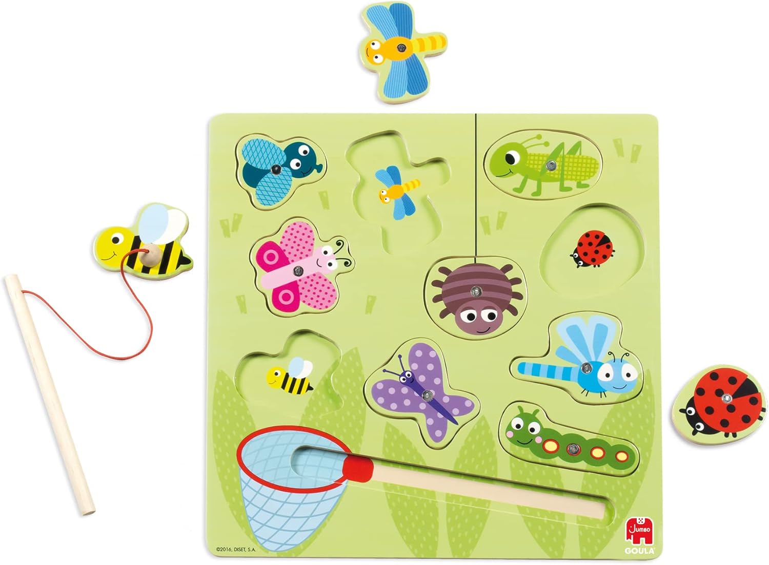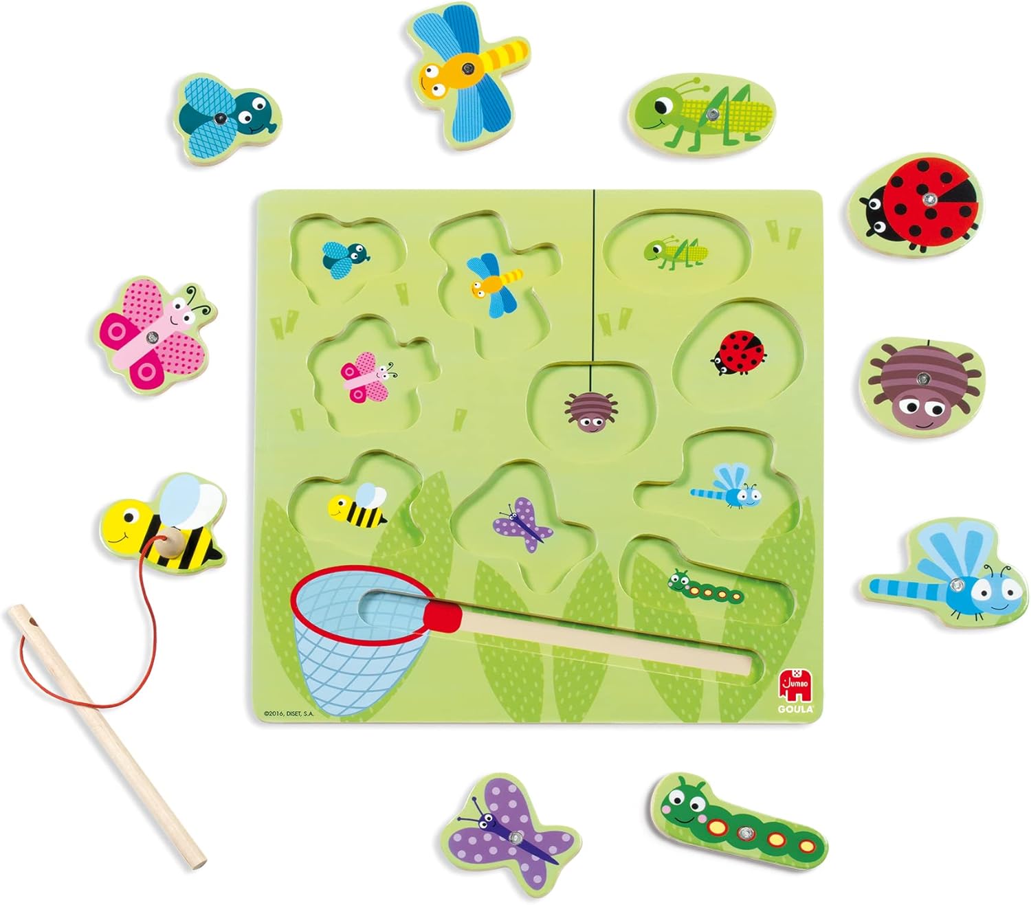 Puzzle bichos magnéticos con caña de pescar para encajar y capturar insectos mientras los peques desarrollan coordinación y motricidad fina.