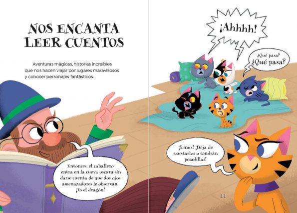 Los gatitos están muy exaltados, dicen que en las montañitas han visto un dragón y nadie les cree… pero Mía y los suyos correrán a investigar si lo que dicen los pequeños es cierto, y ¡qué sorpresa se llevarán!
