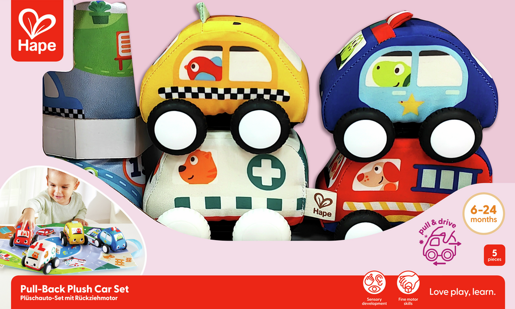Este set de coches de peluche para bebé está diseñado para que los más pequeños disfruten del juego mientras desarrollan sus habilidades motoras. Cada coche tiene un simpático conductor animal y colores llamativos que captan la atención del bebé.