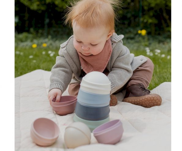 Compuesto por distintos cuencos de diferentes tamaños y una bola con traqueteo, fomenta el juego tanto en la arena como en el agua y viene con estampados y pequeños agujeros de diferentes tamaños para crear un efecto de ducha donde el agua fluye a diferentes velocidades.