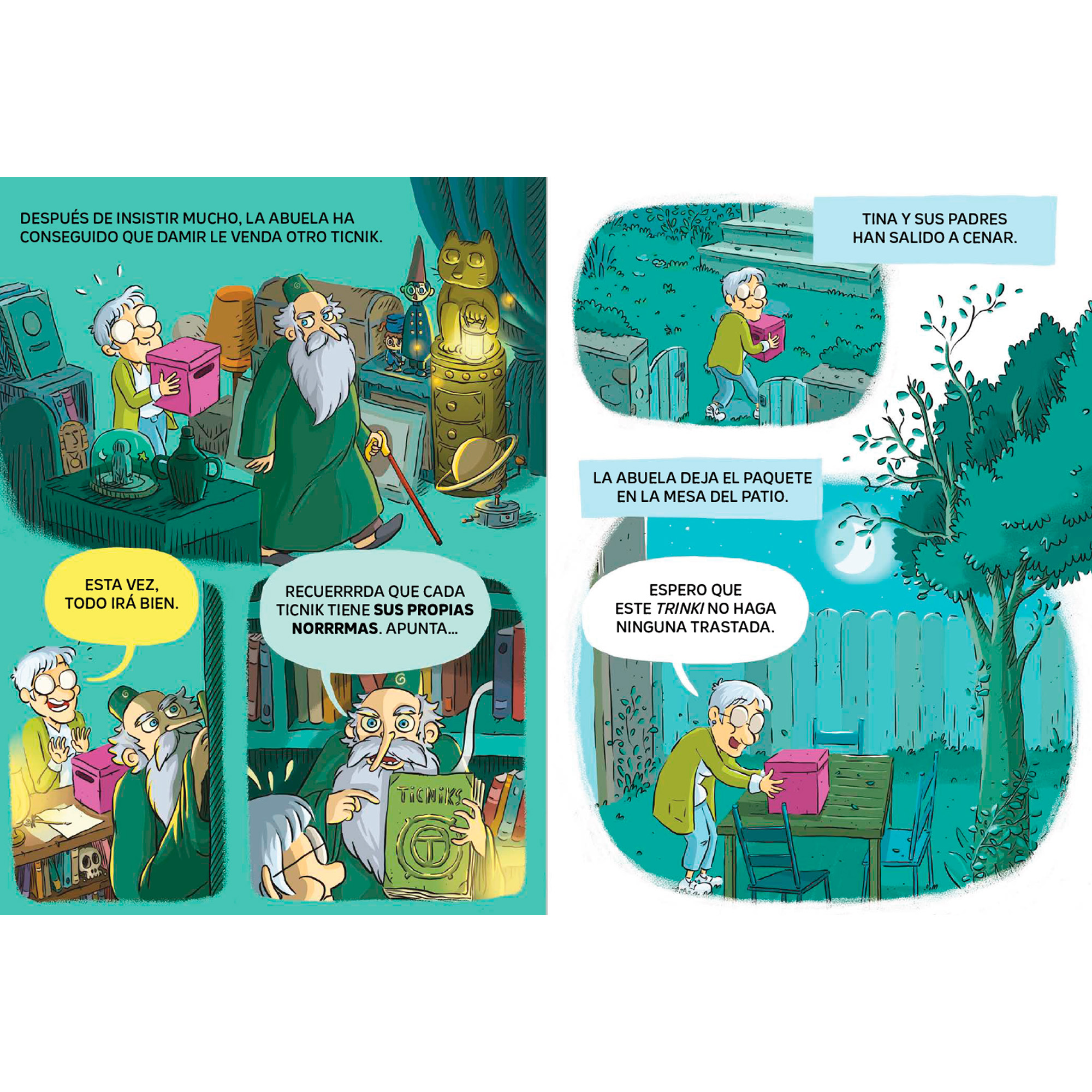 La abuela Enriqueta vuelve a la tienda de Damir a buscar otro ticnik. ¡Qué sorpresa se va a llevar Tina cuando vea el nuevo peluche! Pero la niña ya sabe que debe cumplir tres normas para evitar el desastre. ¿Qué normas serán esta vez? ¿Se acordará de seguirlas?
