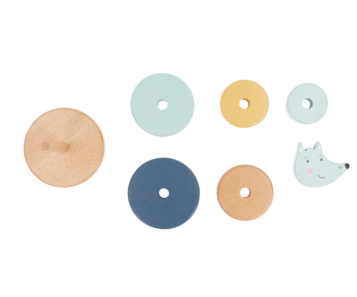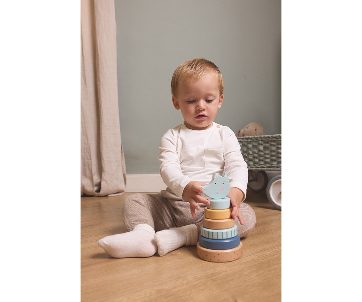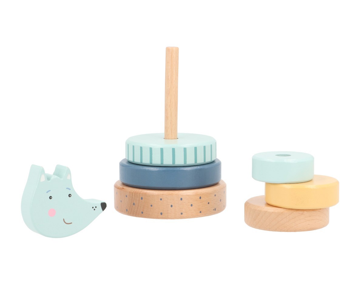 Esta torre apilable, que representa un simpático lobo feroz, es perfecta para entretener a los peques de la casa durante horas. Fomenta el desarrollo la coordinación ojo-mano y estimula las habilidades motoras finas, mientras que los peques aprenden a reconocer diferentes tamaños, formas y colores.