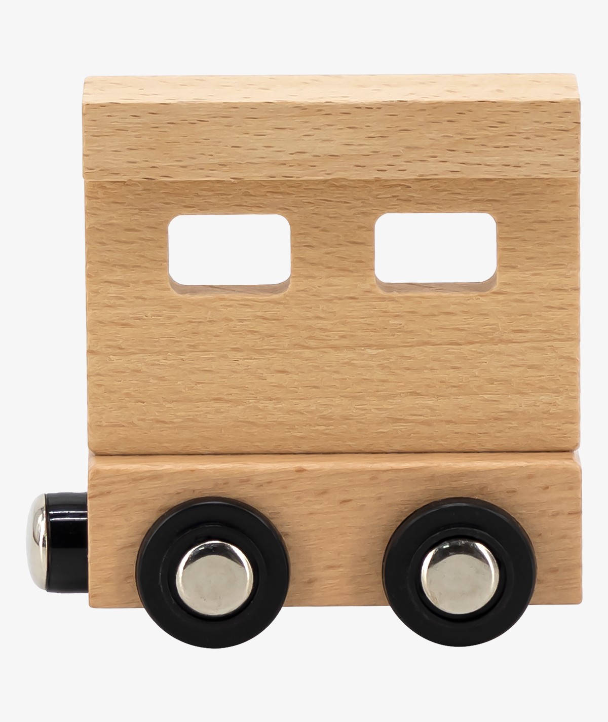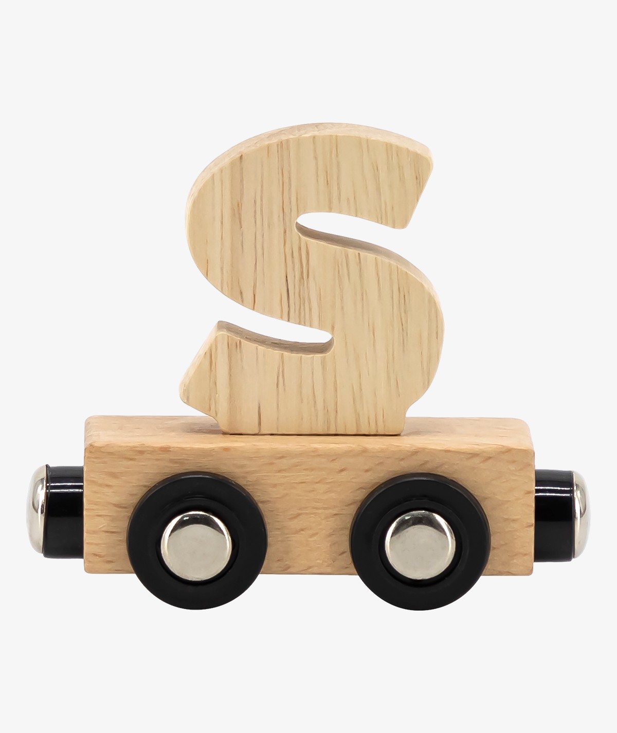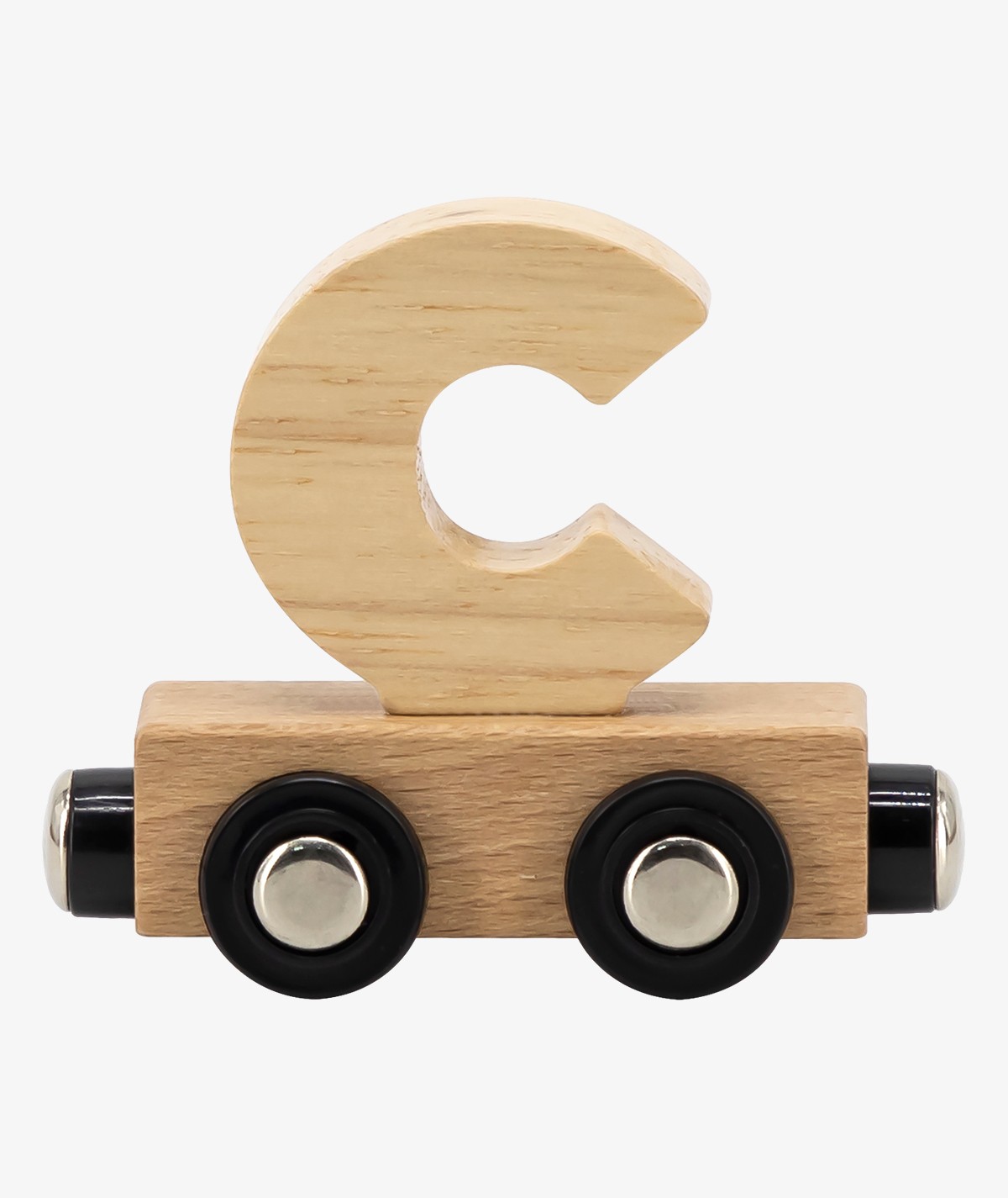 Cada pieza está fabricada en madera natural y cuenta con conexiones magnéticas, lo que facilita que las letras se unan de forma sencilla y segura. Las letras se venden por separado, permitiendo crear un tren totalmente personalizado según el nombre o las palabras que se quieran formar.