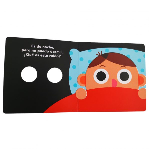 Un libro de cartón y con agujeros para jugar con el miedo, las onomatopeyas y la oscuridad. Mientras tratan de adivinar lo que hay detrás de los agujeros de cada página, los niños y las niñas jugarán a asustarse mediante la imaginación y, a continuación, a tranquilizarse al descubrir qué hay detrás.